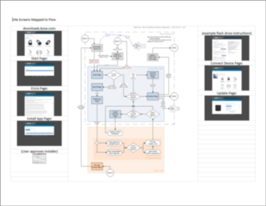From a user interaction point of view, my analysis found that the three classes of legacy devices actually represented only two types of devices. I also found that the legacy update experiences were mappable to the web-based updater workflow, with predictable flow deviations to support the unique features, requirements, and user/device interactions.