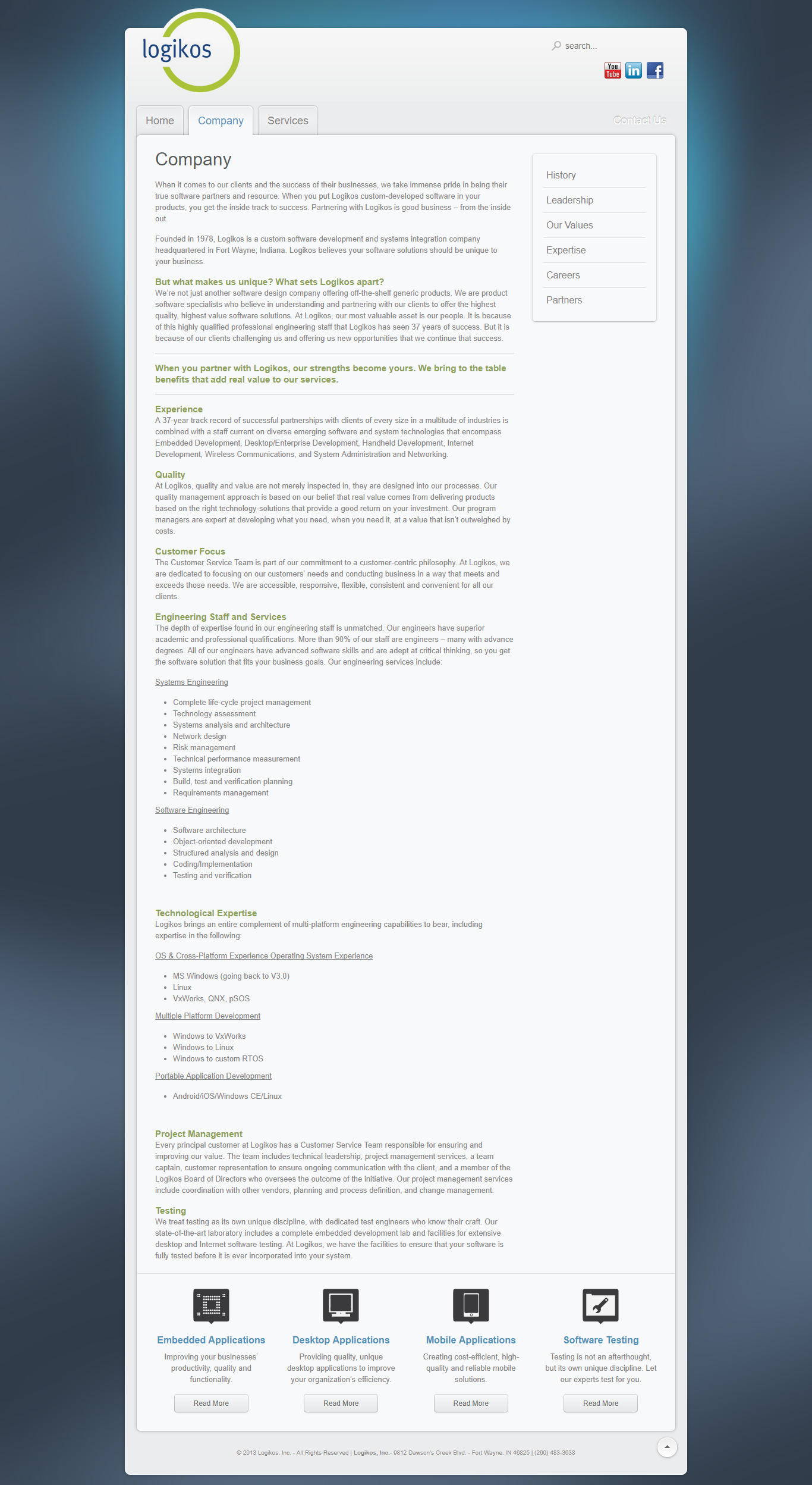 This project was a full site overhaul for a software services company's web presence: re-architect, redesign, rewrite, and re-implement, using Agile/Scrum methodology.